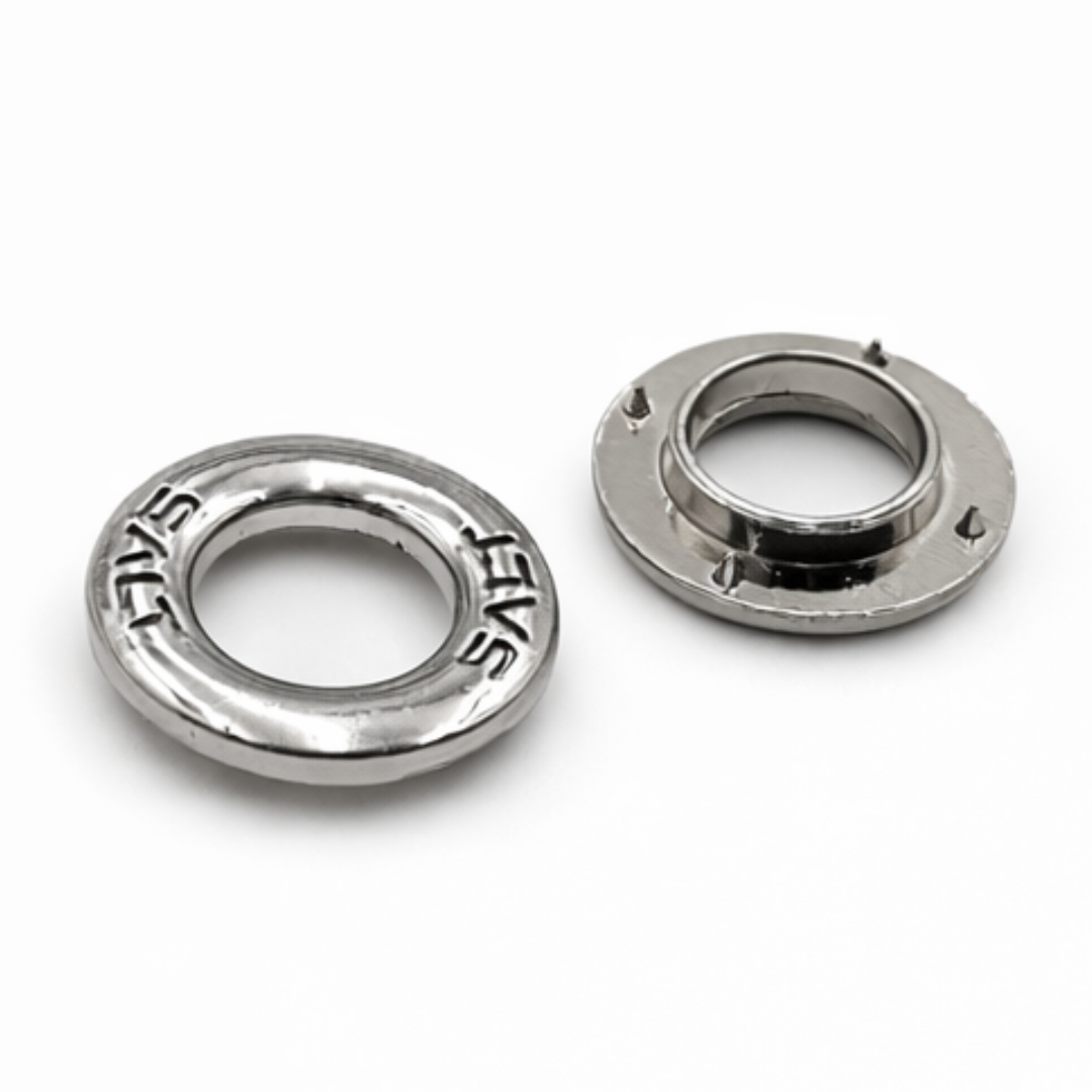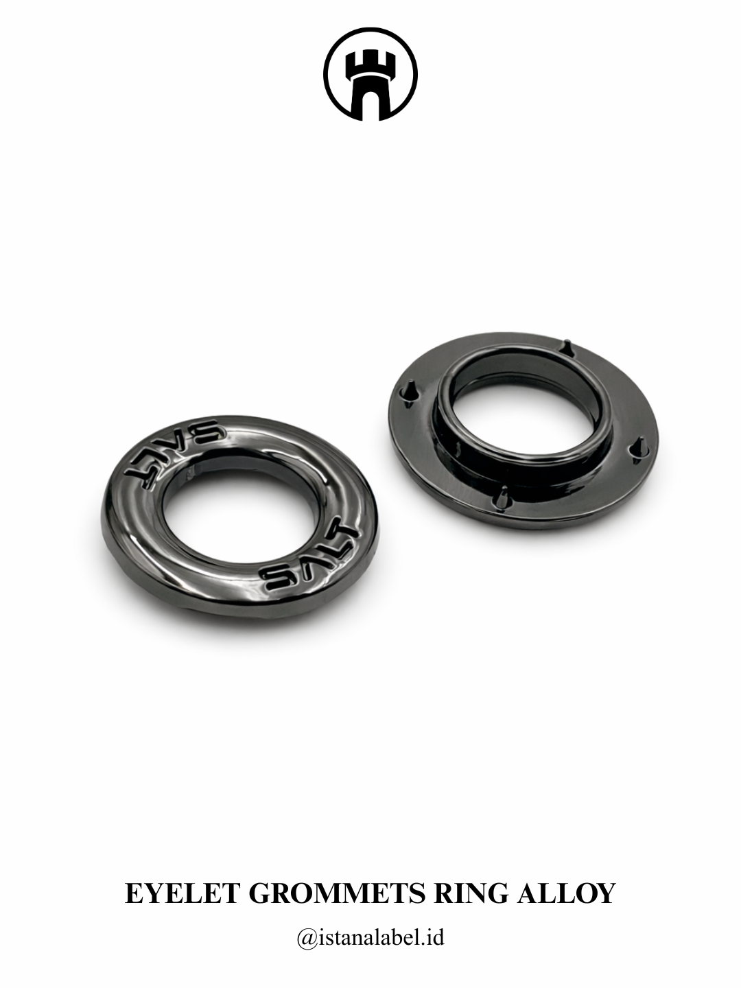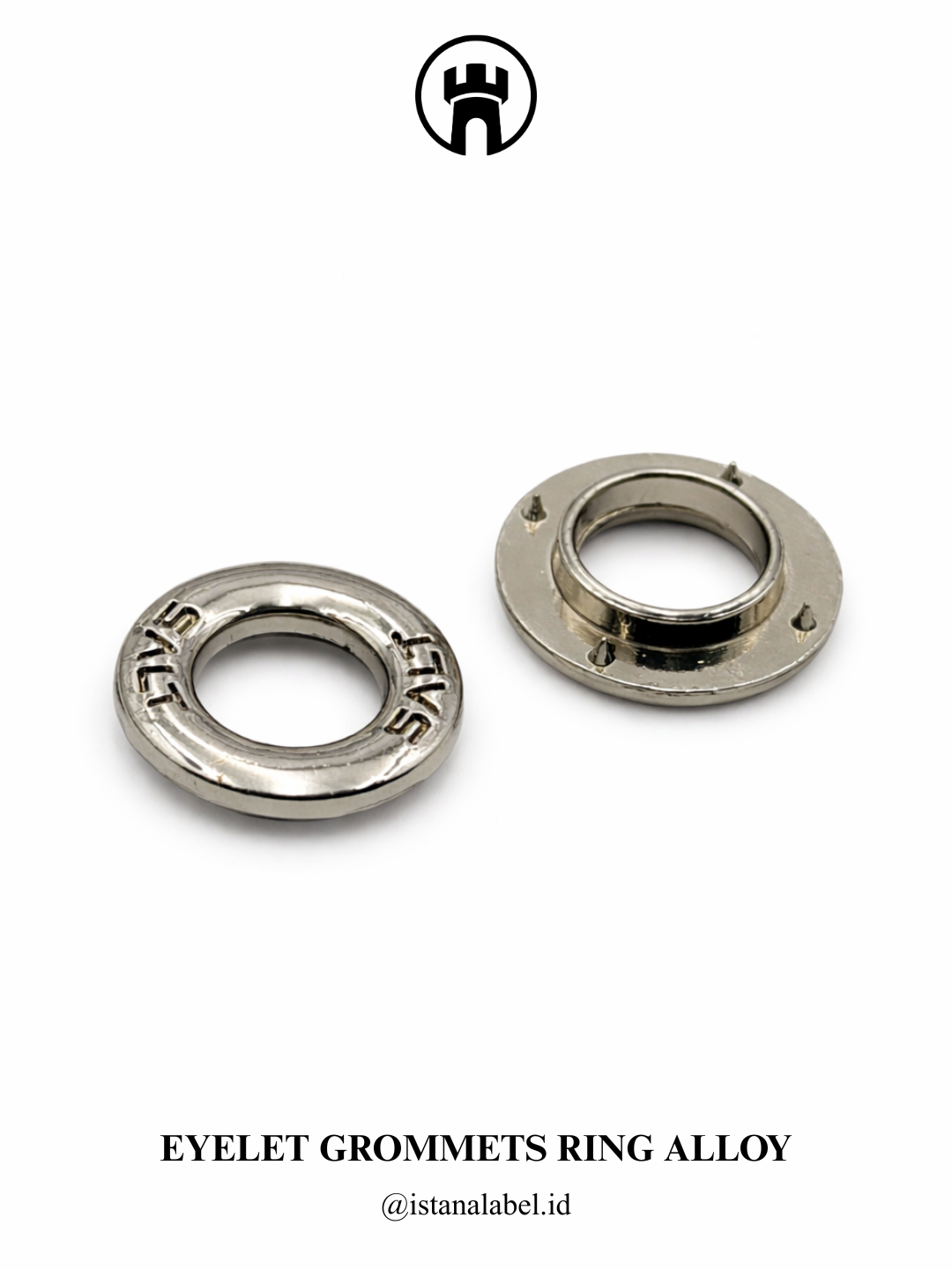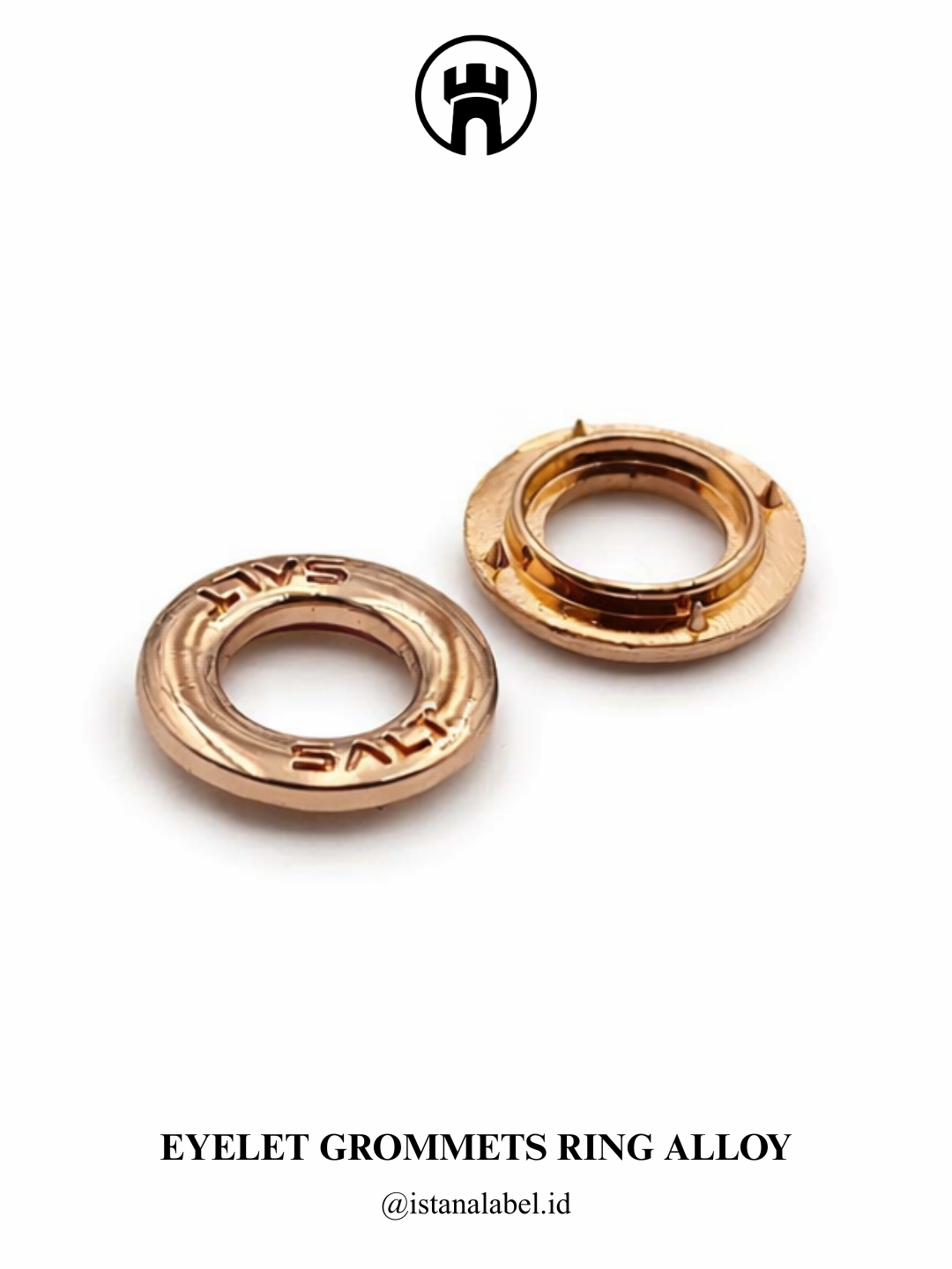 Eyelet grommets ring alloy premium dengan tampilan elegan dan kuat, menggunakan bahan campuran logam berkualitas yang tahan karat dan tidak mudah pudar, tersedia 96 pilihan warna serta bebas custom logo dan desain sesuai kebutuhan brand Anda untuk hasil yang lebih eksklusif.