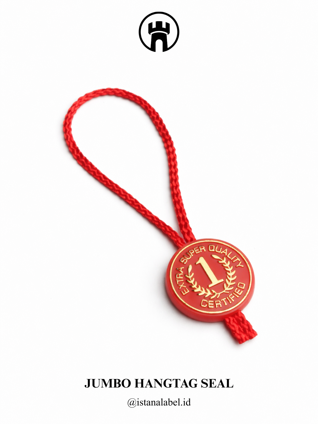 Jumbo hangtag seal berbahan plastik berkualitas dengan tali polyester yang kuat dan tidak mudah putus, ukuran lebih besar untuk tampilan lebih menonjol dan premium, dilengkapi pengunci praktis, serta tersedia 196 pilihan warna.