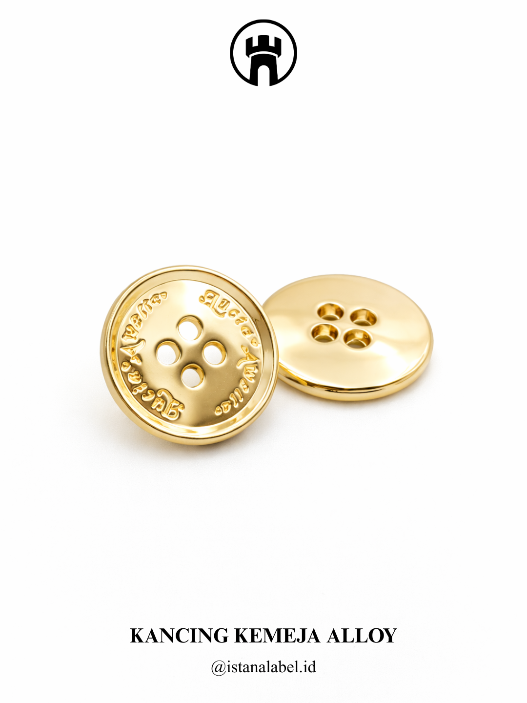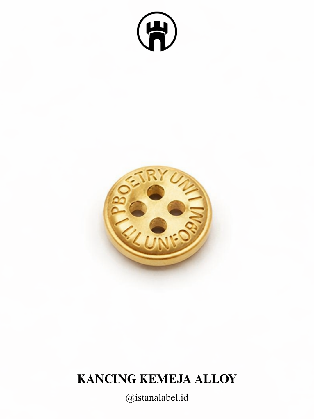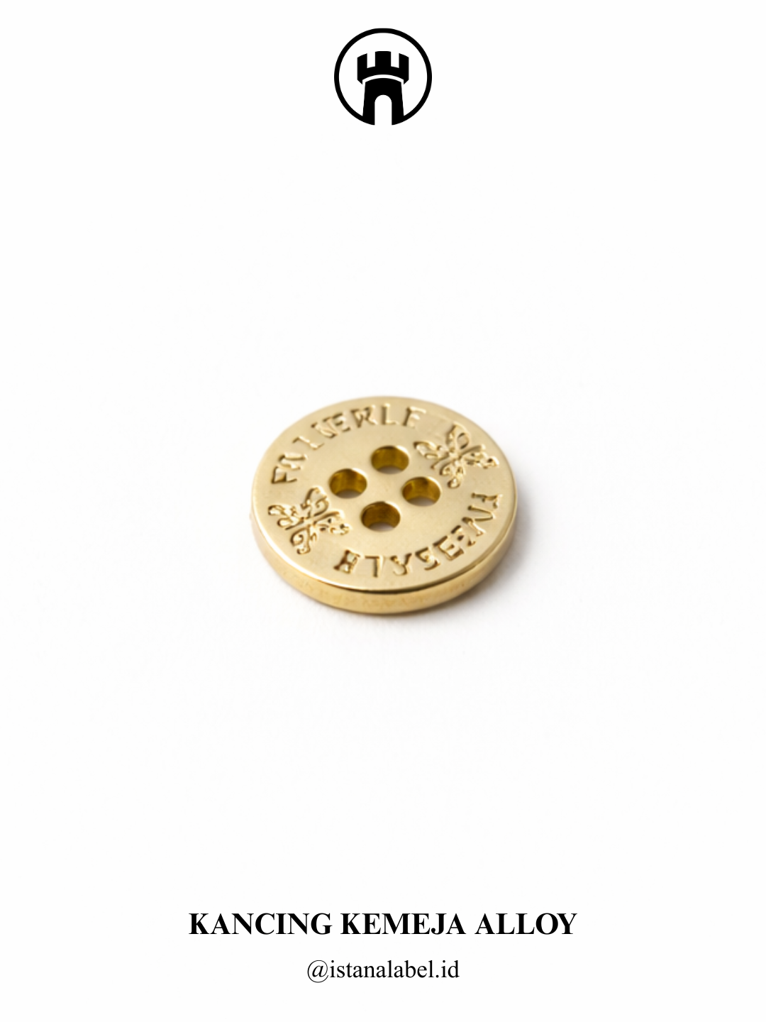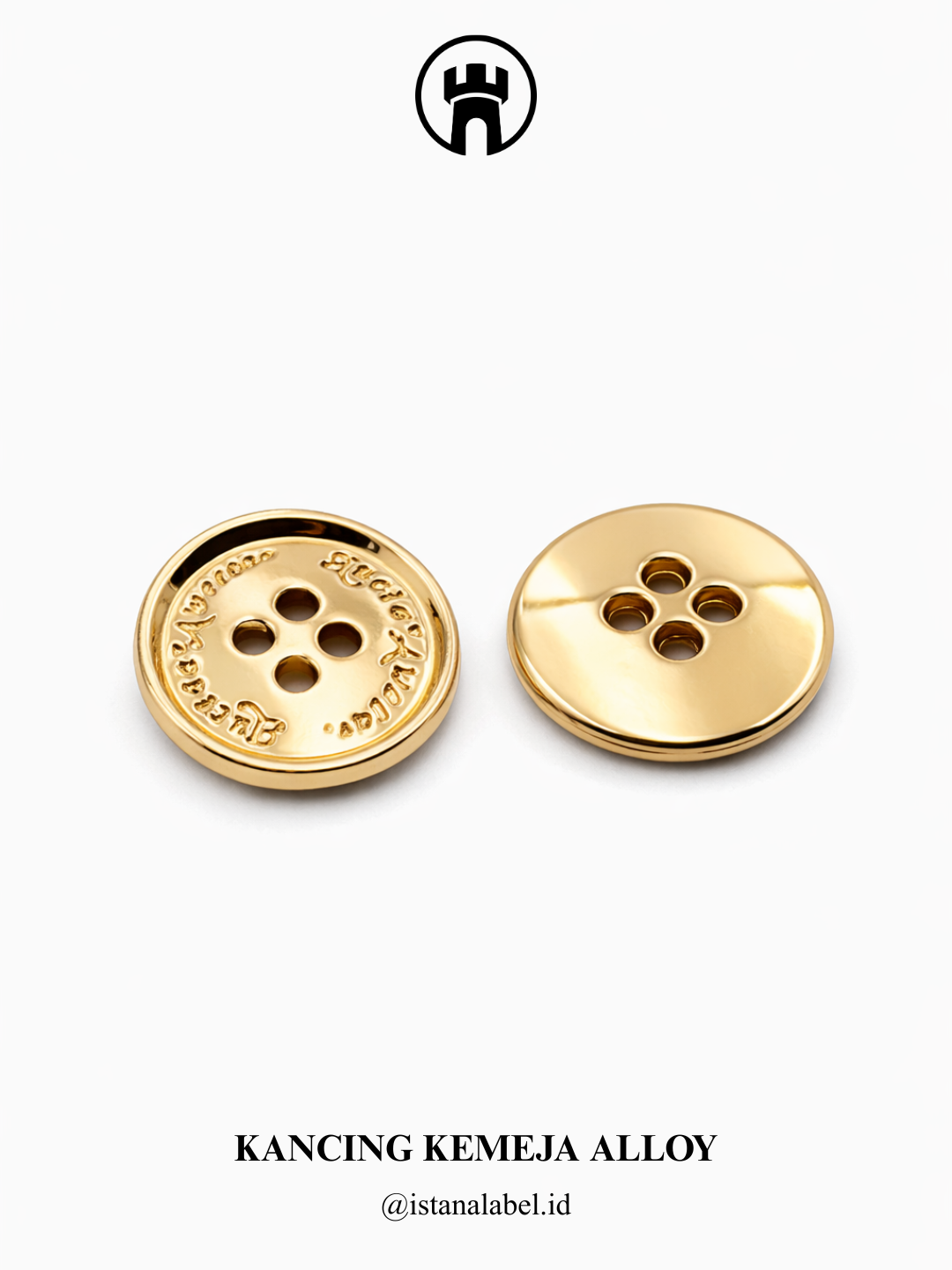 kancing kemeja alloy premium dengan tampilan elegan dan presisi, menggunakan bahan campuran logam berkualitas yang kuat, tahan karat, dan tidak mudah pudar, tersedia 96 pilihan warna serta bebas custom logo dan desain sesuai kebutuhan brand Anda untuk hasil yang lebih eksklusif.