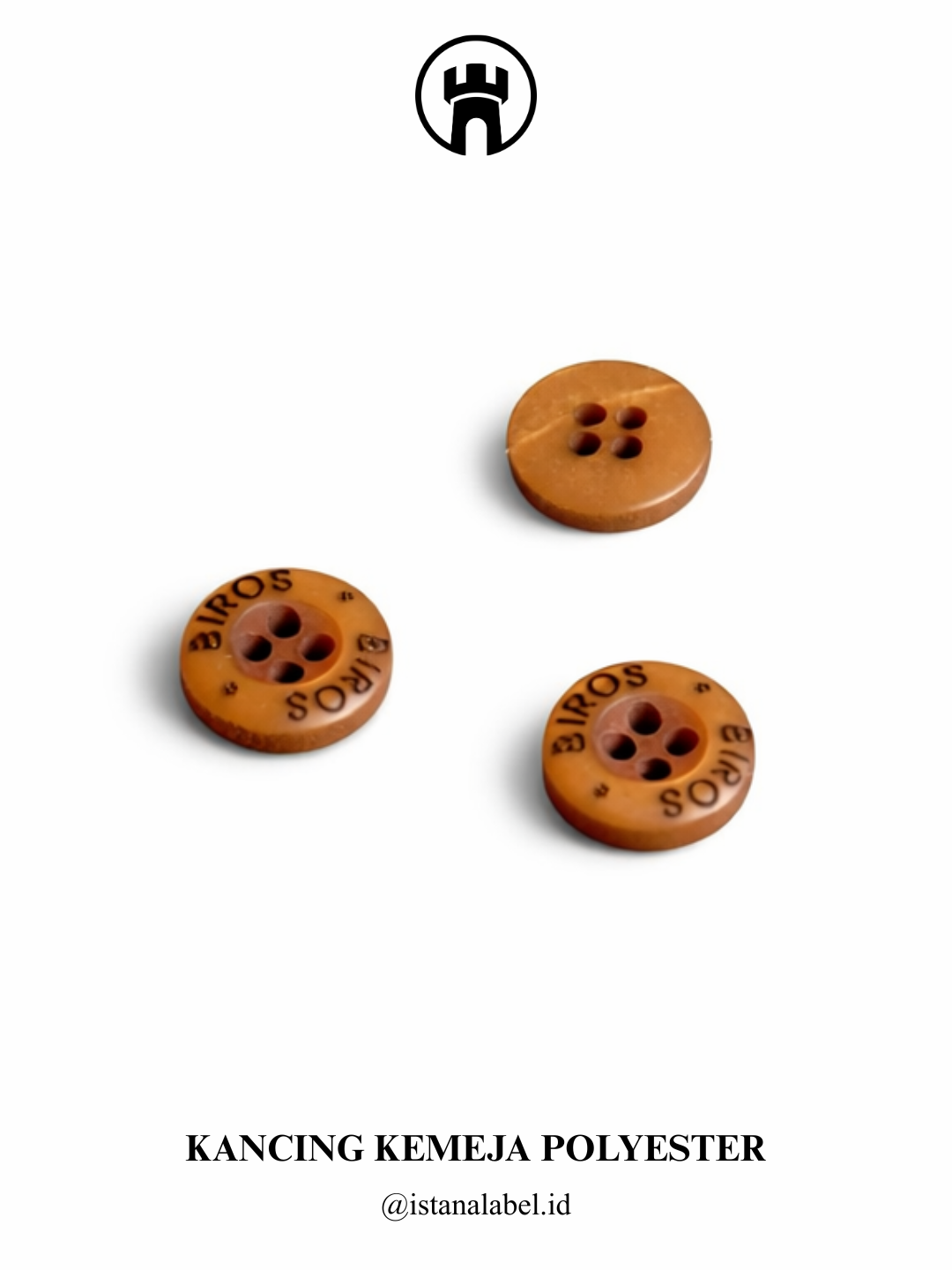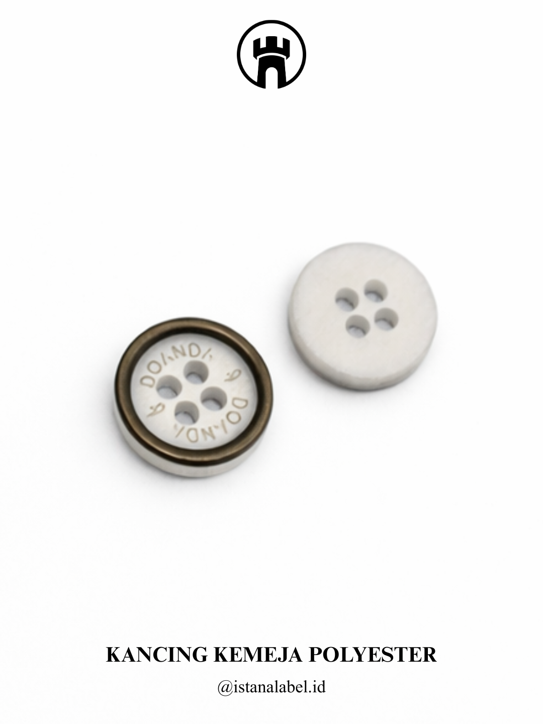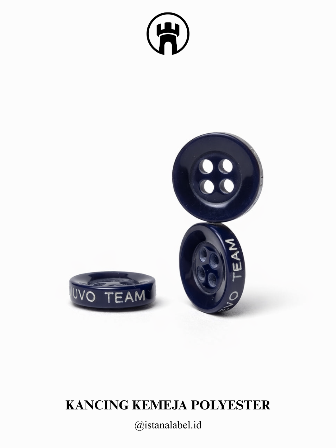 Kancing kemeja polyester berkualitas dengan bahan ringan, kuat, dan tahan lama, memiliki finishing rapi serta nyaman digunakan, tersedia custom logo dan berbagai pilihan warna untuk menunjang tampilan serta identitas brand.
