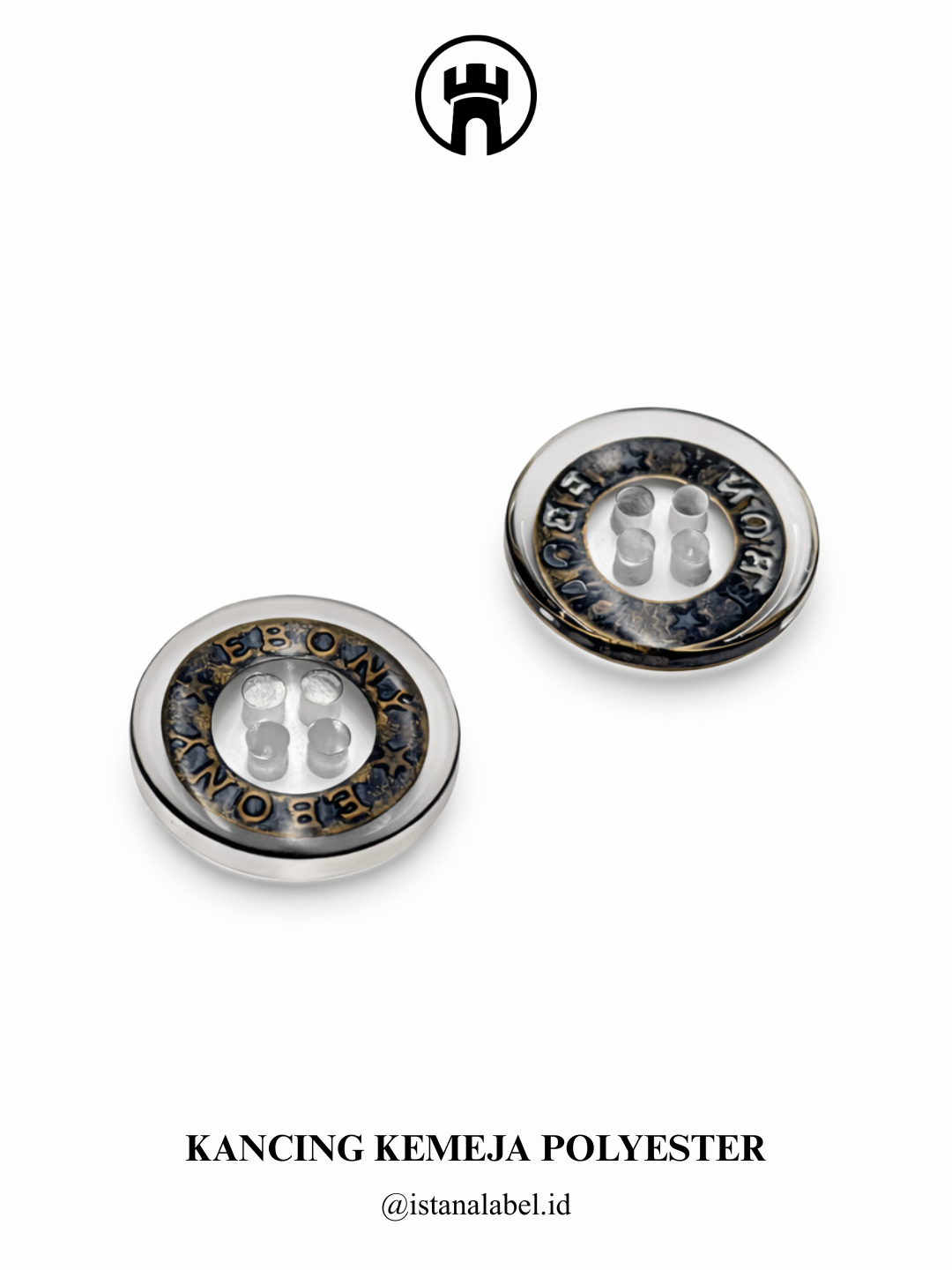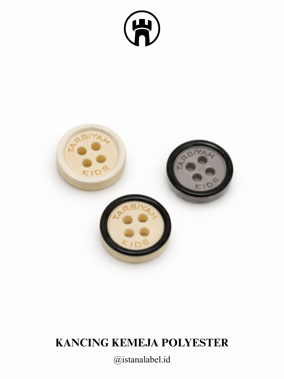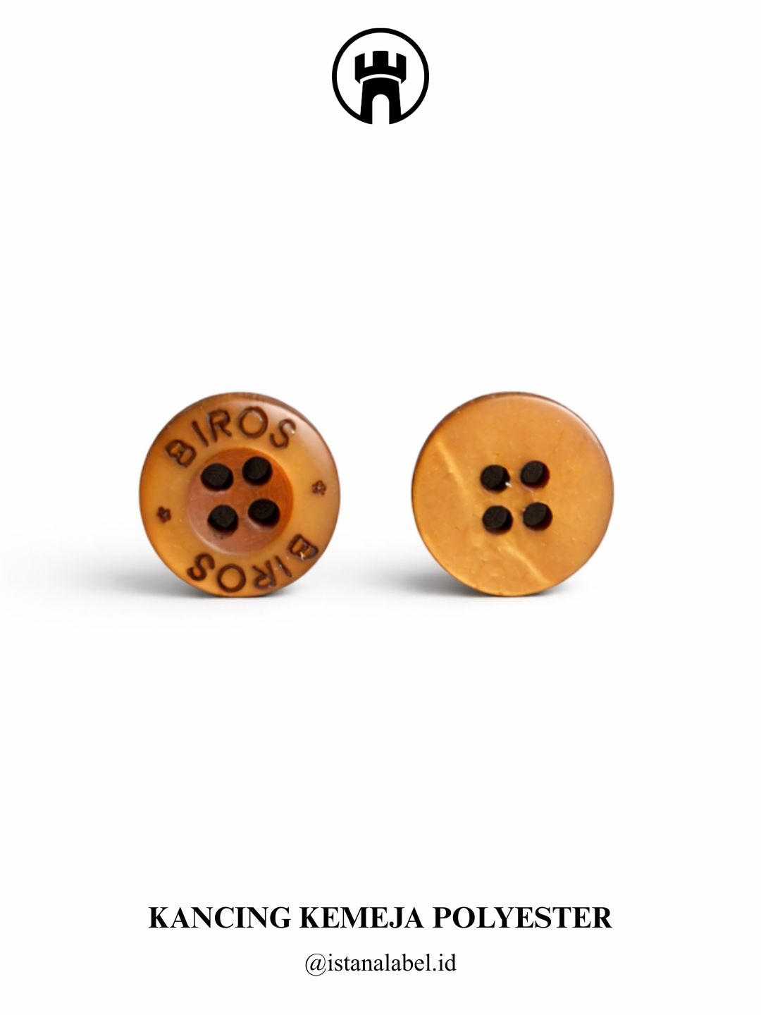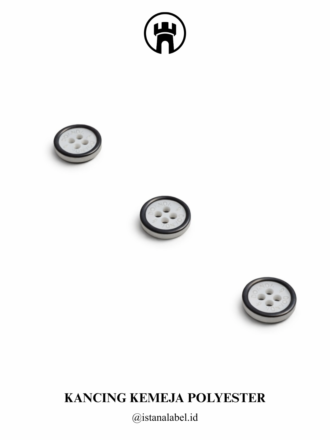 Kancing kemeja polyester berkualitas dengan bahan ringan, kuat, dan tahan lama, memiliki finishing rapi serta nyaman digunakan, tersedia custom logo dan berbagai pilihan warna untuk menunjang tampilan serta identitas brand.