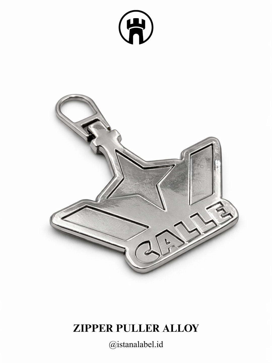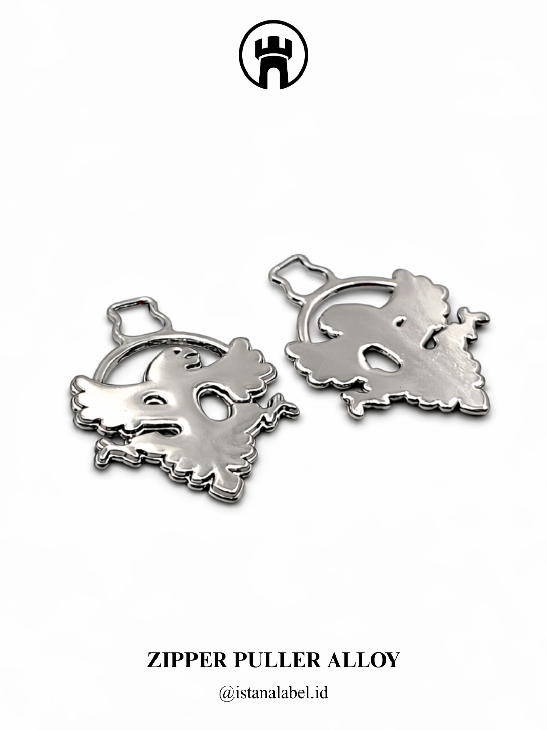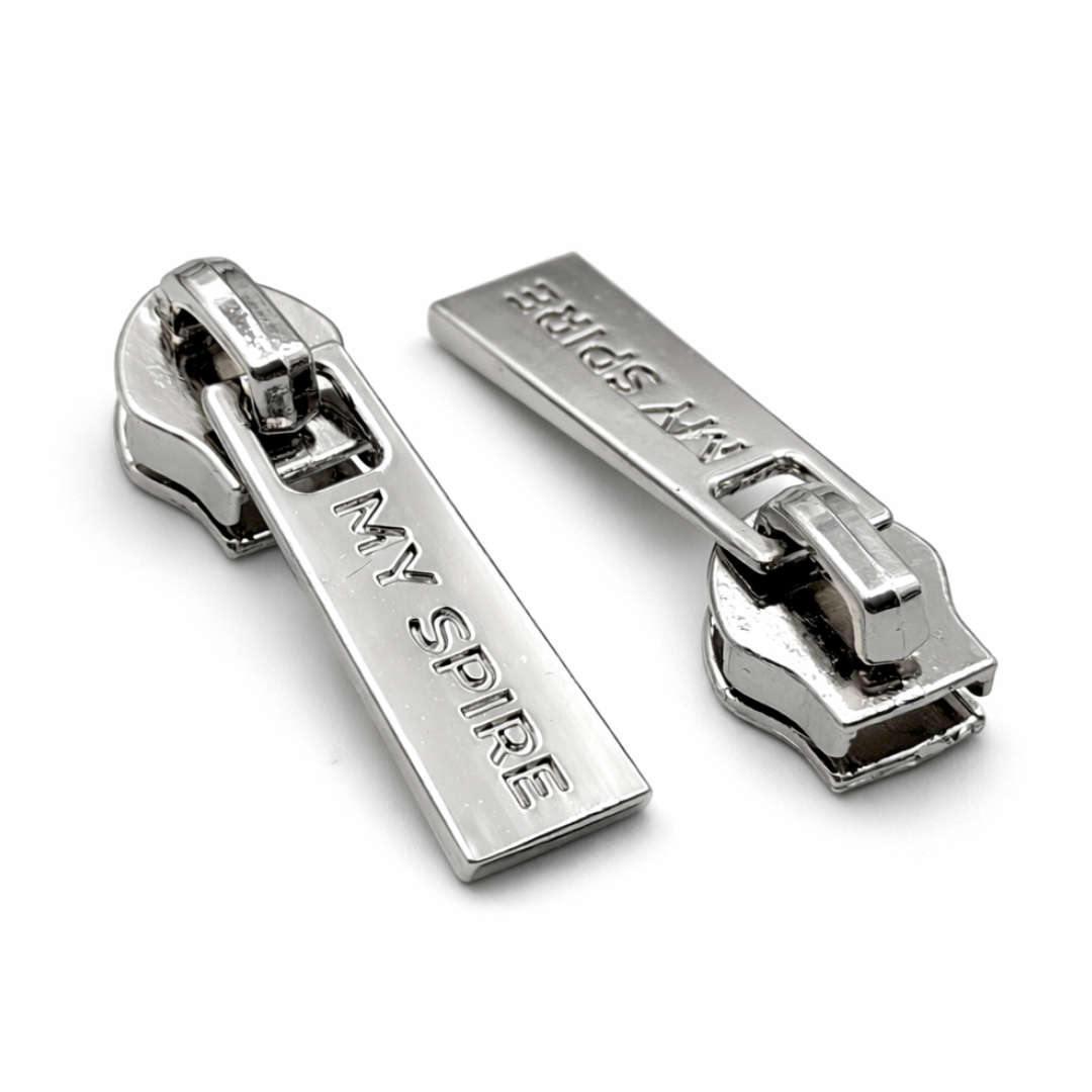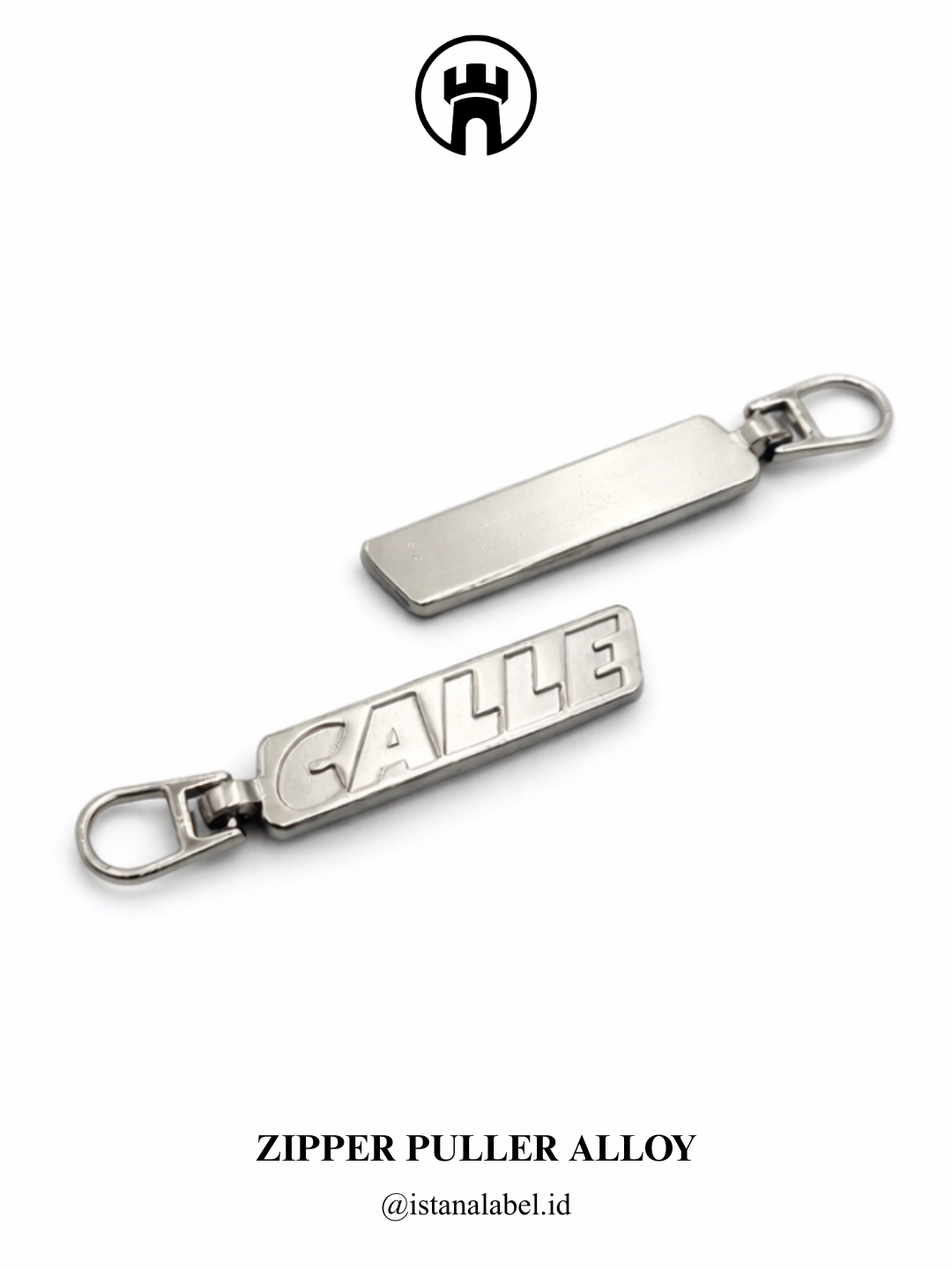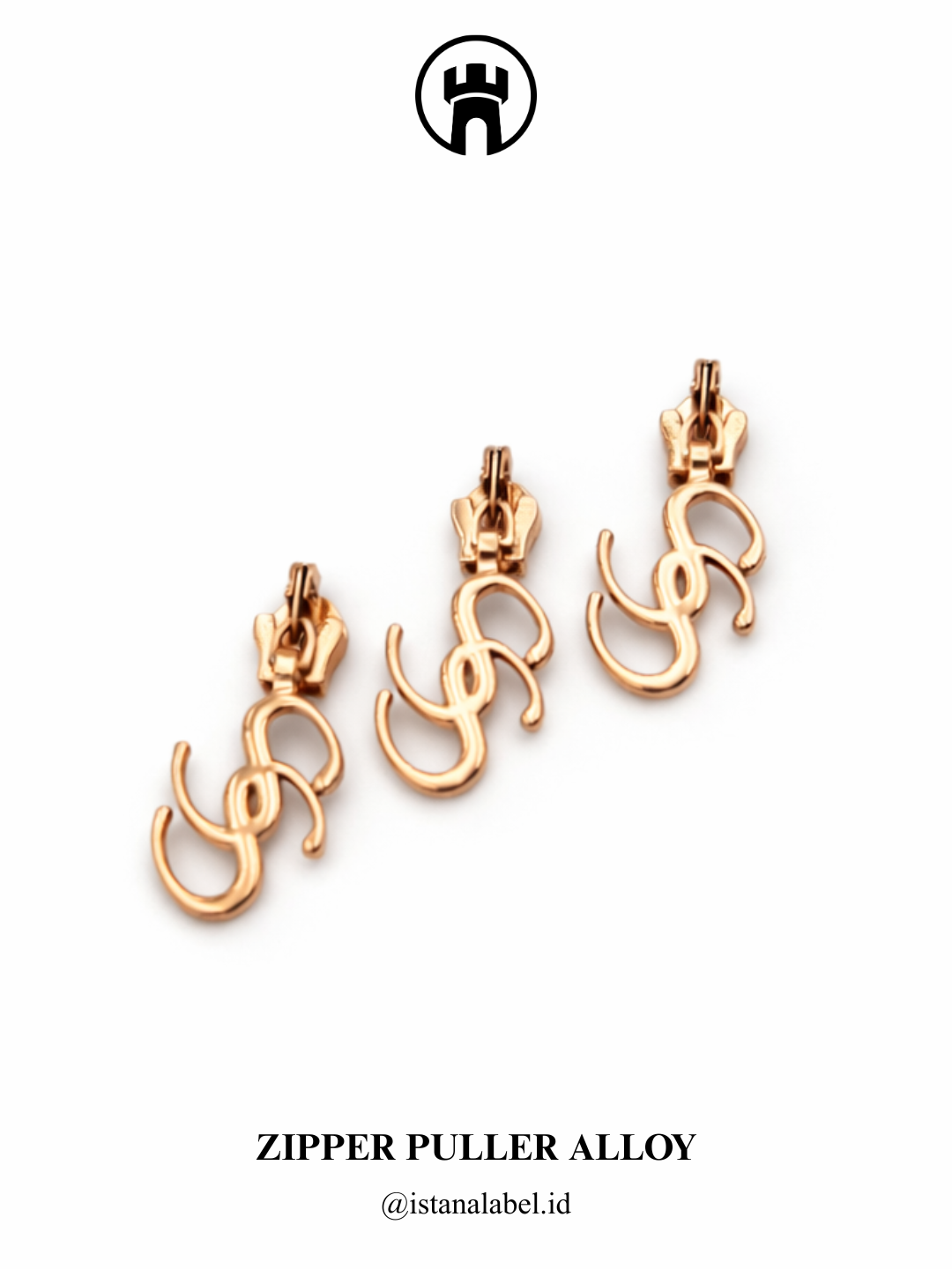Zipper puller alloy premium dengan tampilan elegan dan kuat, menggunakan bahan campuran logam berkualitas yang tahan karat dan tidak mudah pudar, tersedia 96 pilihan warna serta bebas custom bentuk dan logo sesuai kebutuhan brand Anda untuk hasil yang lebih eksklusif.